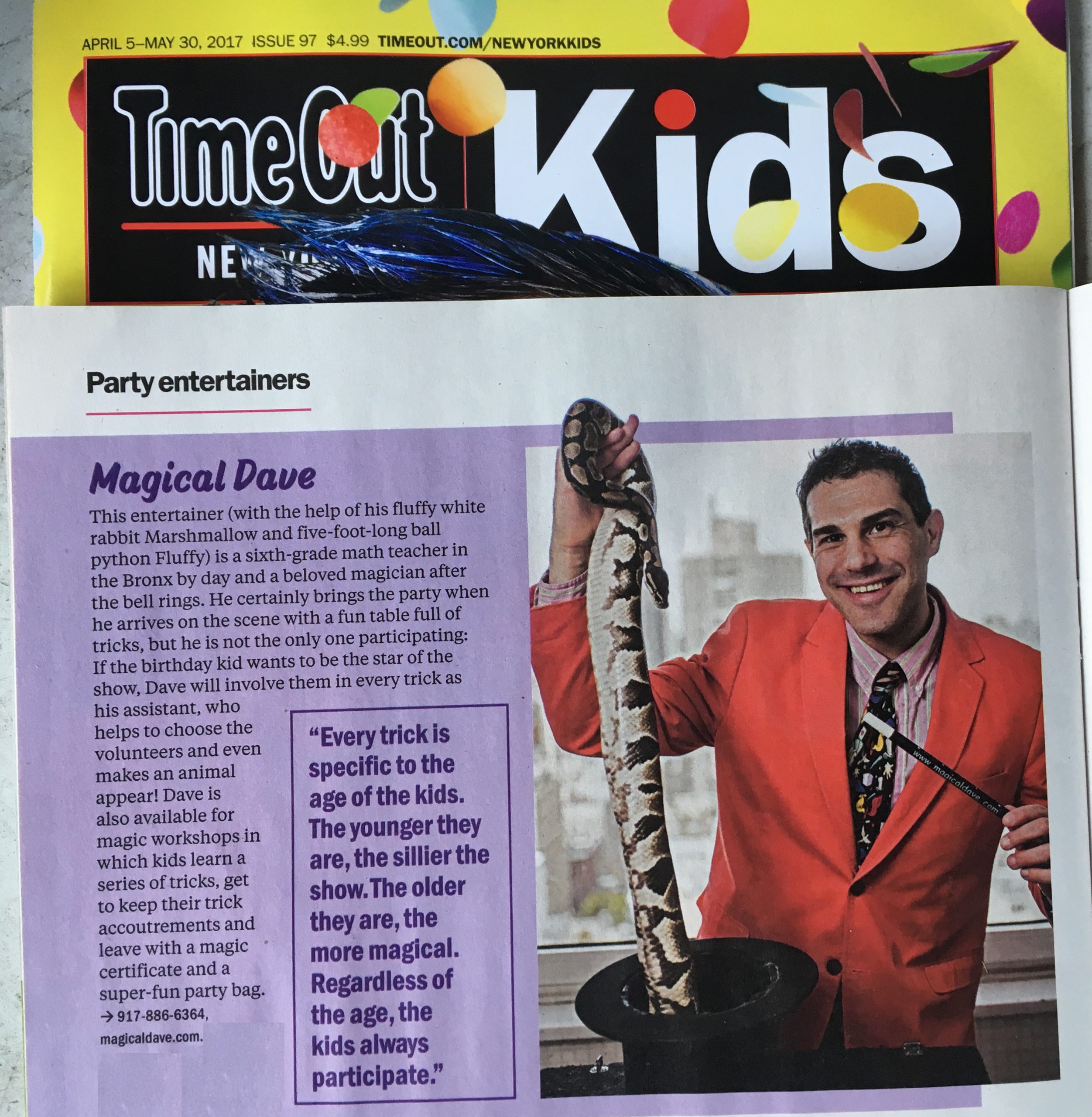Featured in TimeOut Kids NY, Expertise’s Best Magician, Best of the Bronx!